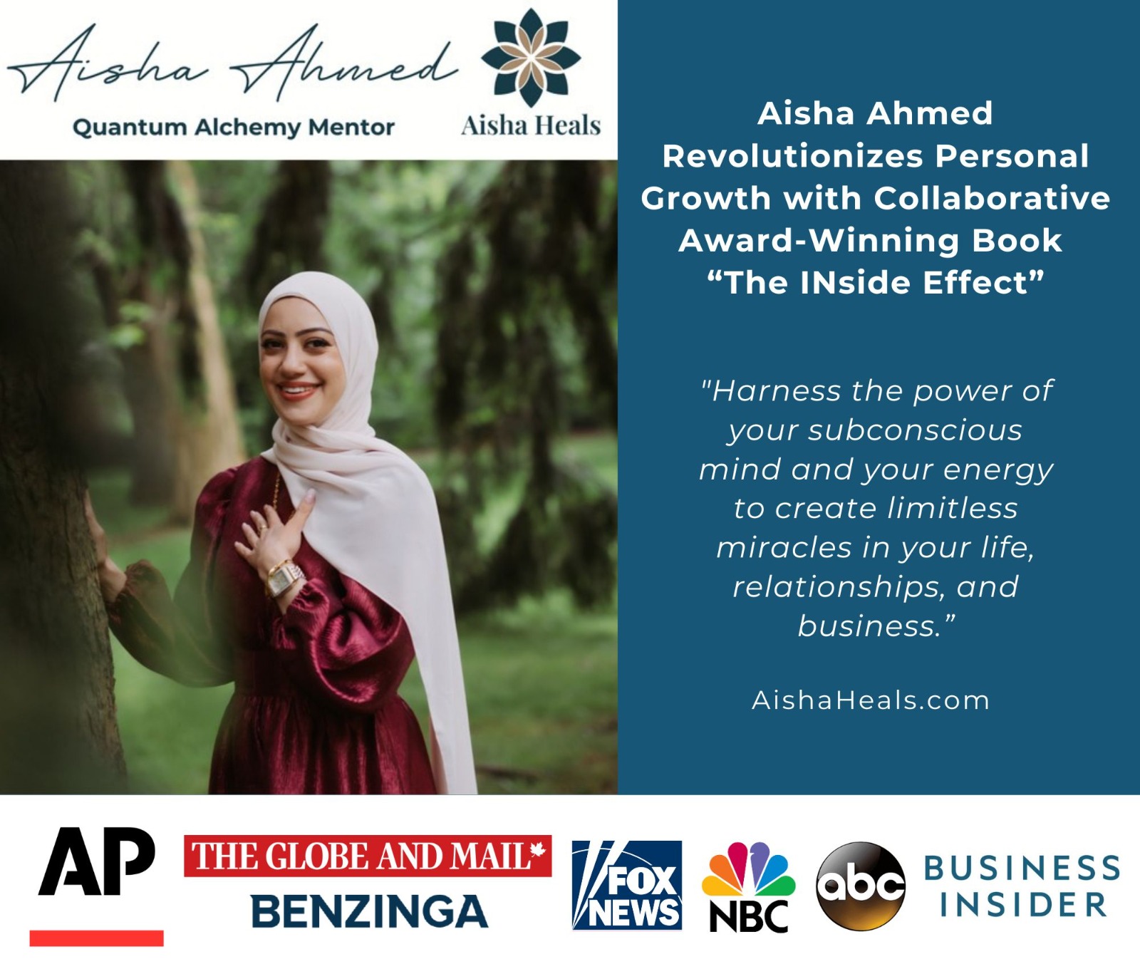 Aisha Ahmed, a renowned expert in the subconscious mind and quantum energetics, proudly announces her participation in the internationally bestselling and award-winning book, The INside Effect: How the Body Heals Itself. This groundbreaking book is a beacon of hope that explores the transformative power of inner work and its significant impact on personal and professional success.
