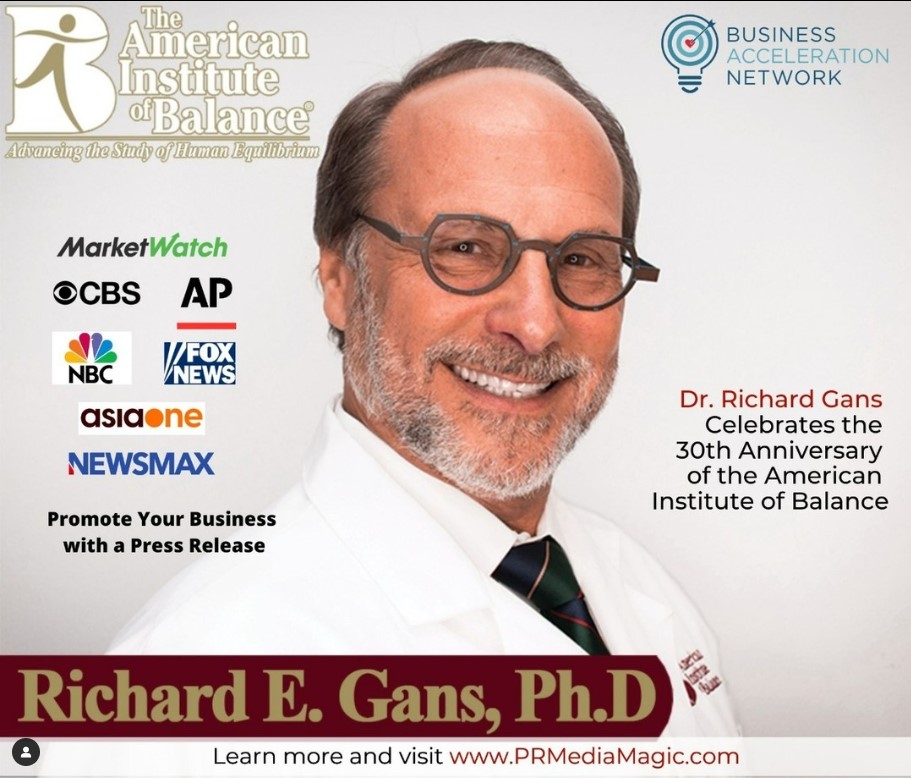 Richard Gans, PhD, an Ohio State University-trained auditory-vestibular neurophysiologist, founded The American Institute of Balance 30 years ago. Since then, he has dedicated himself to helping those suffering from dizziness, balance disorders, and vestibular diseases. A pioneer in vestibular rehabilitation and balance disorders, he has helped millions regain their health and quality of life. In recognition of his tireless work and dedication to the medical community, Dr. Gans has received the Distinguished Lifetime Achievement Award from the American Academy of Audiology. In honor of his anniversary, he pledges to continue serving the medical community and expanding access to quality healthcare.