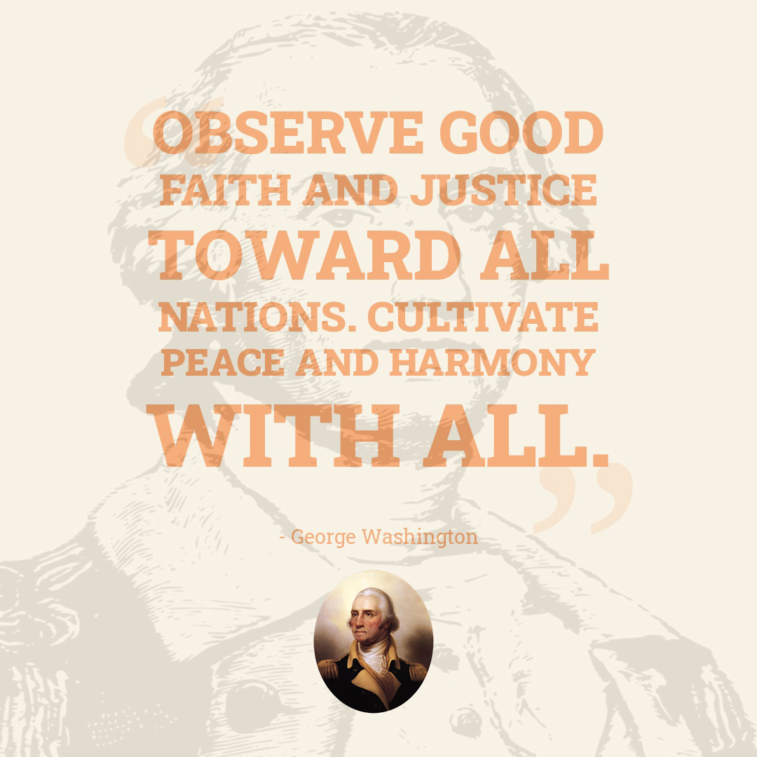Observe good faith and justice towards all nations. Cultivate peace and harmony with all.
